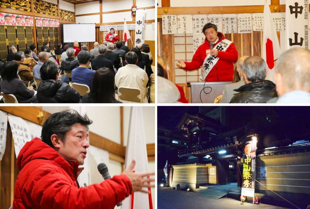 角善寺での個人演説会では、皆様日本の未来について真剣な面持ちでお聞きくださいました。